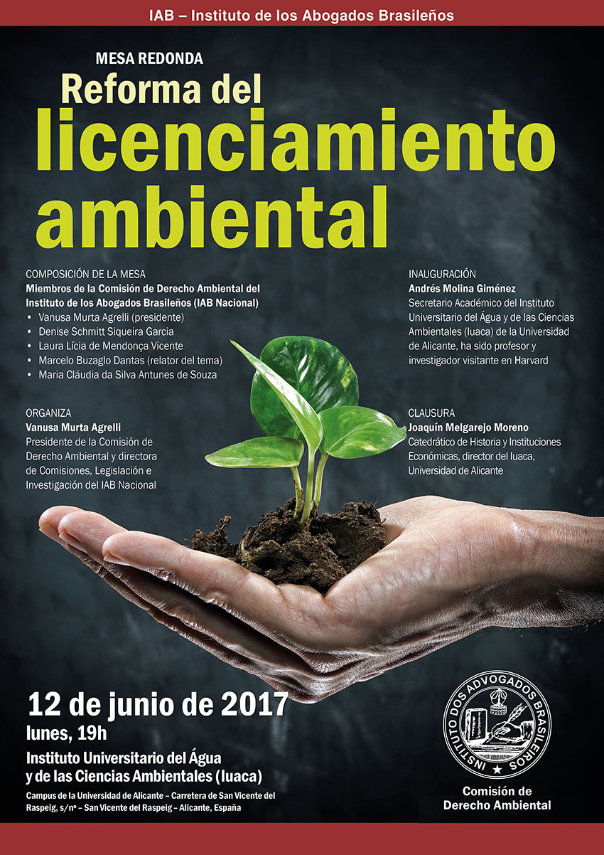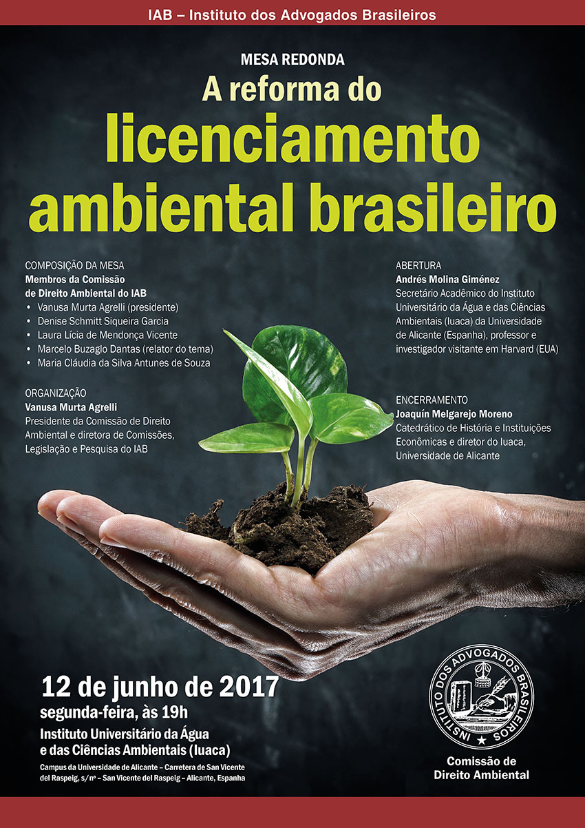 A mesa de debates será composta pelos membros da Comissão de Direito Ambiental do IAB: Vanusa Murta Agrelli (presidente), Denise Schmitt Siqueira Garcia, Laura Lícia de Mendonça Vicente, Marcelo Buzaglo Dantas (relator do tema na comissão) e Maria Cláudia da Silva Antunes de Souza.