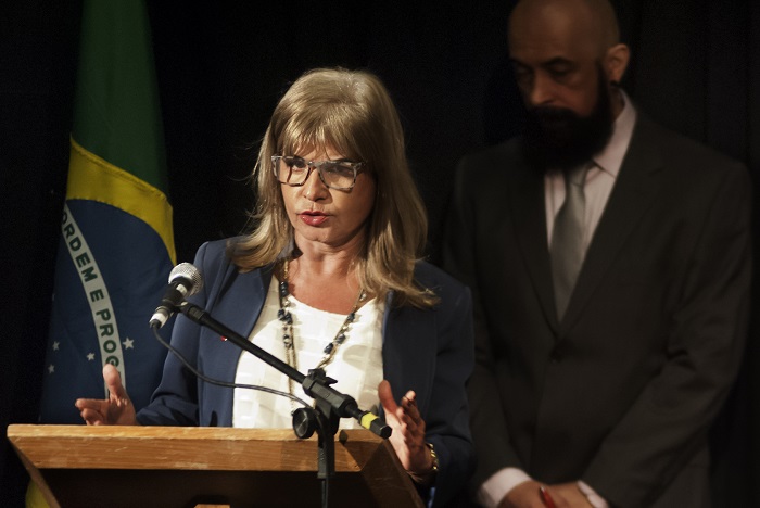 Rosana Salim Villela Travesedo acompanha a palestra de Manoel Messias Peixinho