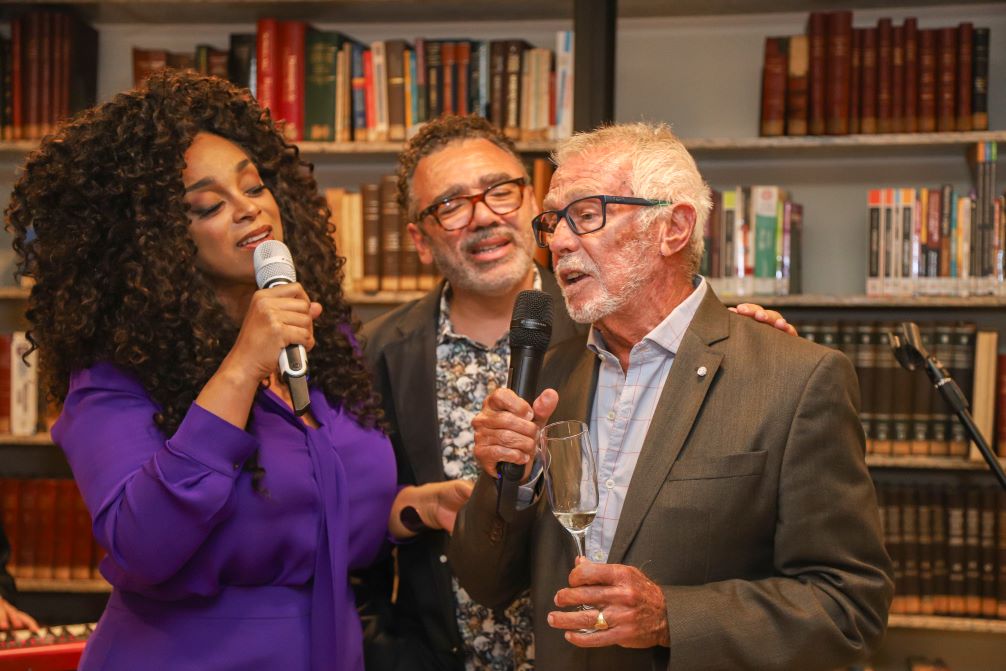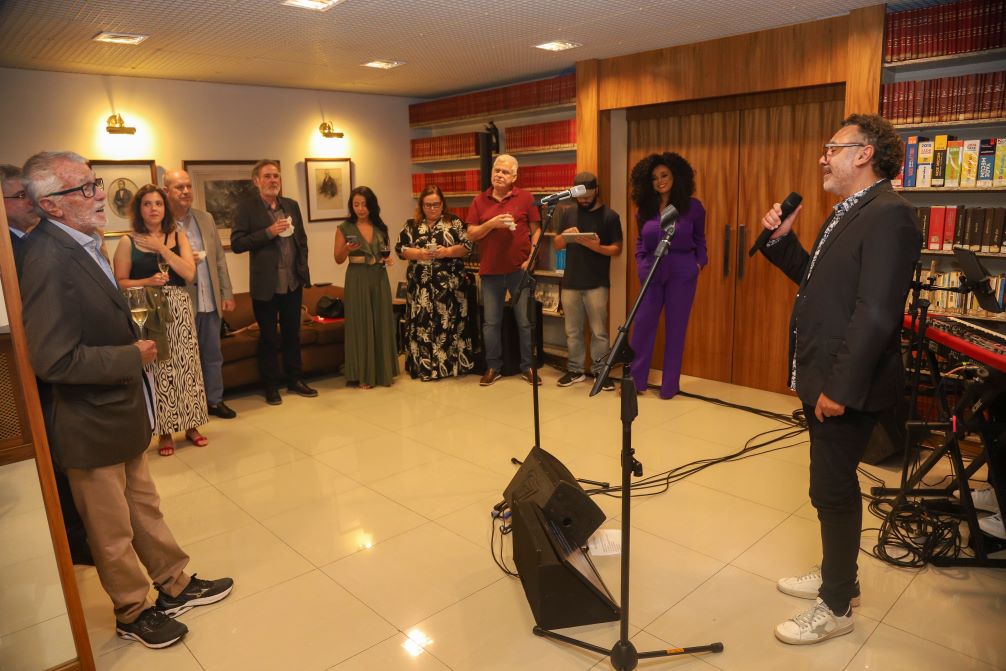 Canja – Após a entrega das medalhas, Paula Lima e Simoninha cantaram músicas em homenagem a Paulo Sérgio Valle na Biblioteca Daniel Aarão Reis do IAB. A confraternização, que reuniu membros da diretoria, consócios e consócias e convidados, contou ainda com uma canja do diretor Antônio Laért Vieira Júnior.