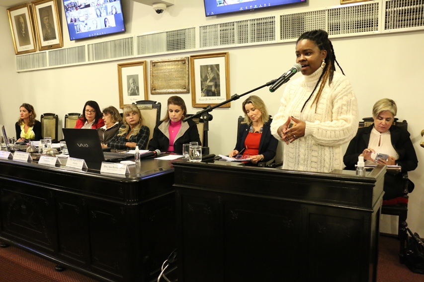 Assessora legislativa da OAB/RJ, Ana Borba Taboas falou sobre a elaboração da cartilha O gênero como categoria jurídica: “Reunimos um grupo de mulheres advogadas que têm esse viés da advocacia feminista em sua atuação profissional e também observamos a questão da diversidade racial. Desse encontro surgiu a cartilha, que traz não só conceitos básicos e questões de desigualdade estruturais, mas também uma capacitação em áreas específicas do Direito”.