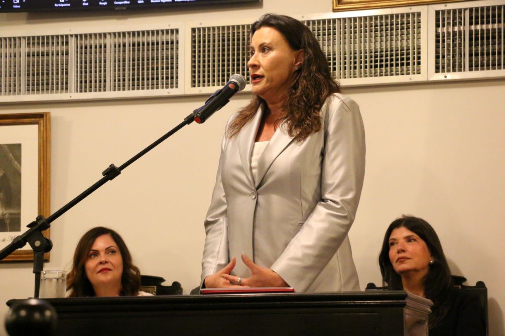 Karina Callai foi a primeira dos empossados a discursar e destacou a enorme satisfação em integrar o IAB e contribuir para a defesa do Estado Democrático de Direito. Ela irá compor as Comissões de Direito Processual Civil e de Direito Digital. “Este é um momento de grande significado para a minha trajetória. Será um prazer participar de uma Casa de juristas tão respeitada, que é um sonho para os advogados”, afirmou.