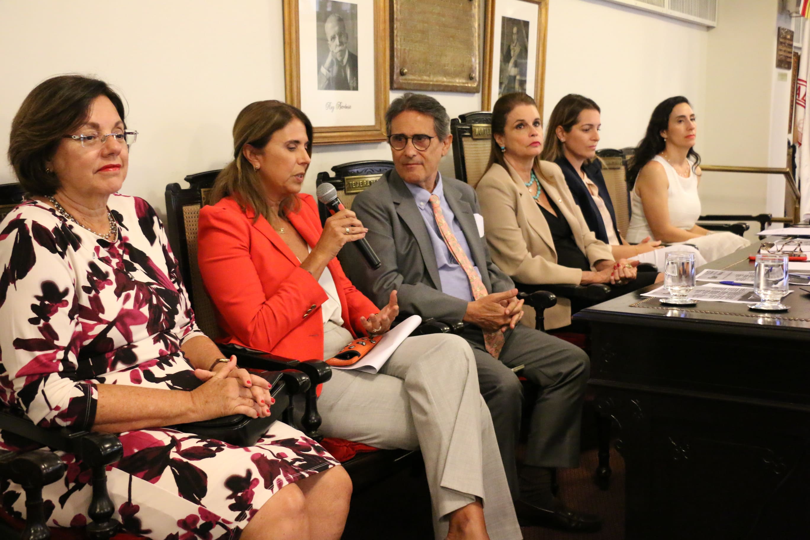No primeiro painel de debate, intitulado A visão das mulheres nas Câmaras de Arbitragem, as palestrantes compartilharam dados que constroem o cenário atual da presença feminina no setor. De acordo com Camila Cardoso, no Centro Brasileiro de Mediação e Arbitragem os homens ocupam 70,6% das posições de árbitro. Apesar da minoria expressiva, o Brasil ainda sai na frente de outros países desenvolvidos. Em Nova York, na Society of Maritime Arbitrators (SMA), os homens são 67 dos 72 árbitros. “Está melhor do que internacionalmente, mas está bom? Para mim não! Ainda podemos melhorar. A Diretoria de Arbitragem do CBMA tem seis homens e duas mulheres e a Diretoria de Mediação, essa sim, tem apenas dois homens e quatro mulheres”, contou Camila Cardoso.