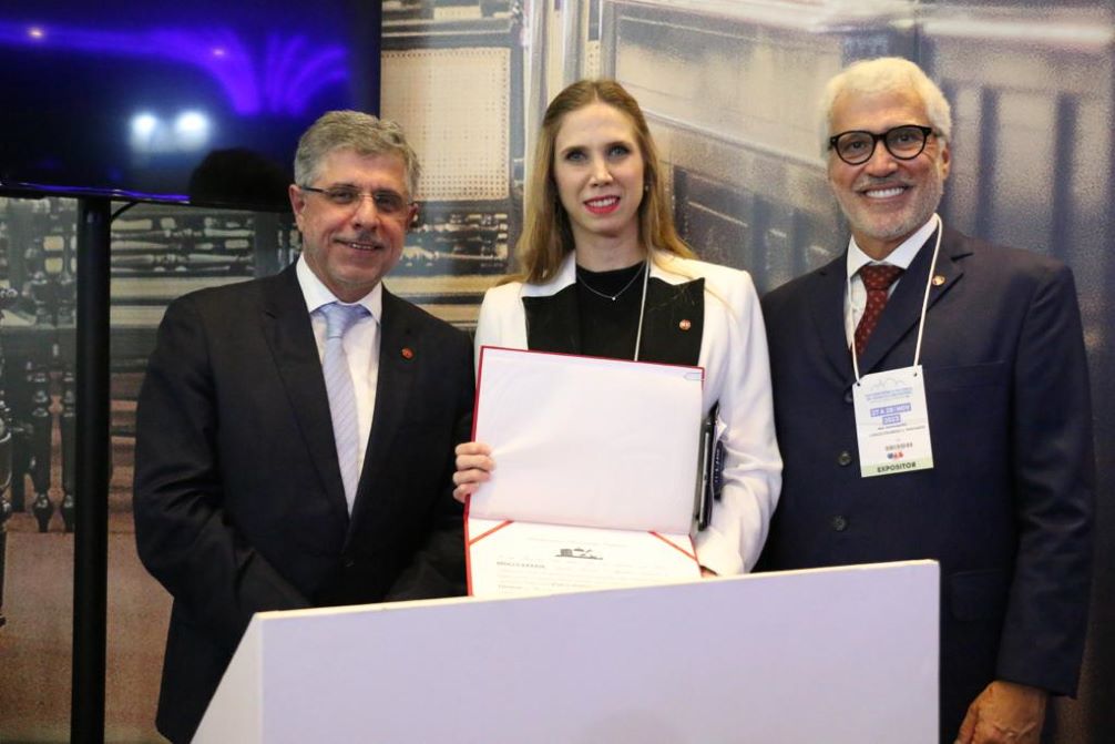 Da esq. para a dir., Sydney Limeira Sanches, Cláudia da Silva Prudêncio e Carlos Eduardo Machado