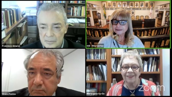 “Com eventos como este, o IAB está trazendo cultura para os jovens advogados e estudantes de Direito, sobretudo nesse momento de desincentivo à cultura, à educação e à ciência por que passa o País”, disse Maria Lúcia Gyrão. Também fez palestra o presidente da comissão, André Fontes, desembargador do Tribunal Regional Federal da 2ª Região (TRF2). “O jusnaturalismo trata dos direitos naturais, como à vida e à liberdade, por exemplo, mas que nem sempre são amplamente acolhidos pelo direito positivo, ou seja, pelas regras jurídicas”, destacou o magistrado. O webinar Papo com o IAB foi aberto e encerrado pela presidente nacional, Rita Cortez, que aplaudiu “a excelente aula de filosofia dada pelos três professores da comissão”.