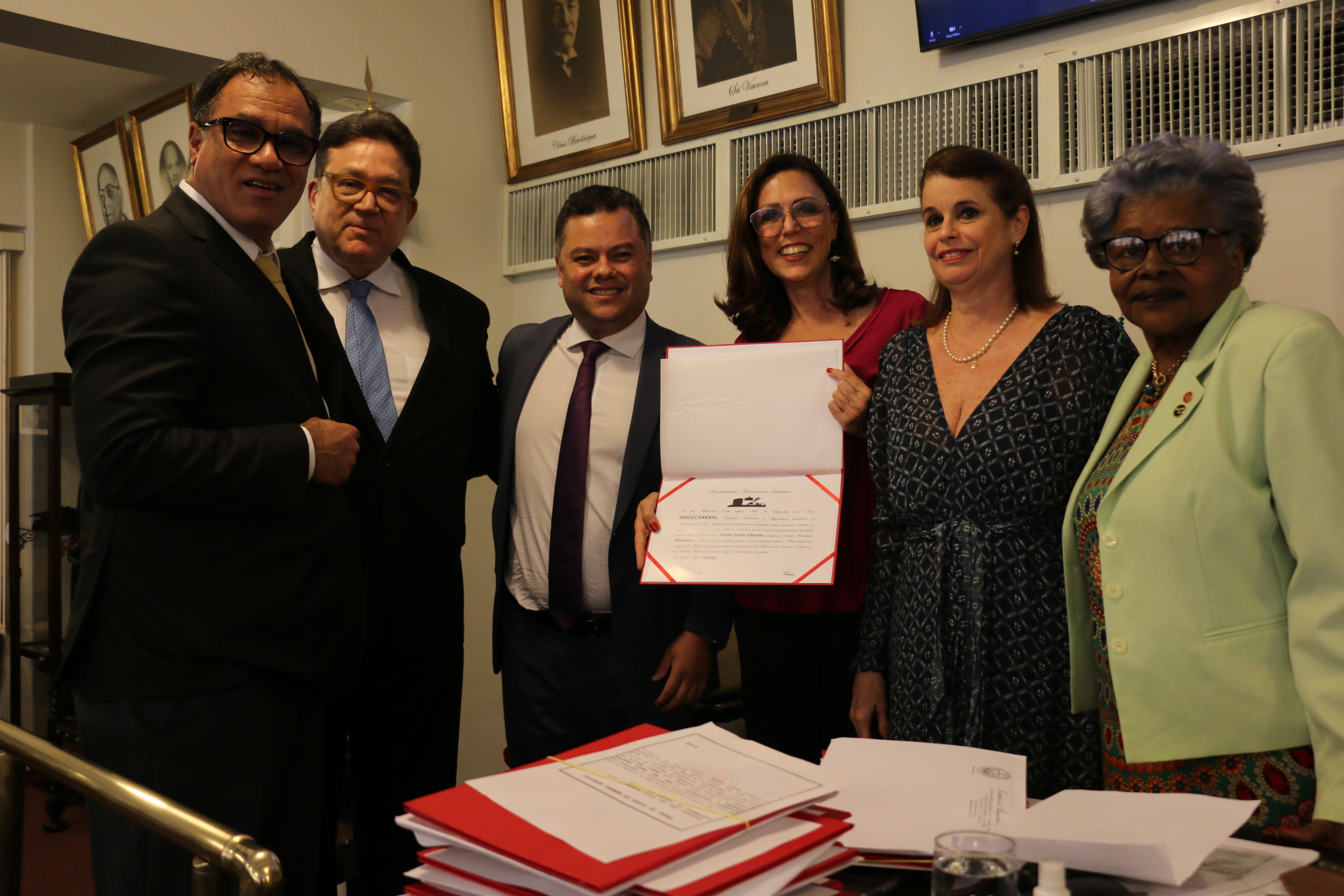 Da esq. para a dir., Jorge Rubem Folena, Arnon Velmovitsky, Leandro Frota, Daniela Giacobbo, Adriana Guimarães e Edmée da Conceição Ribeiro Cardoso