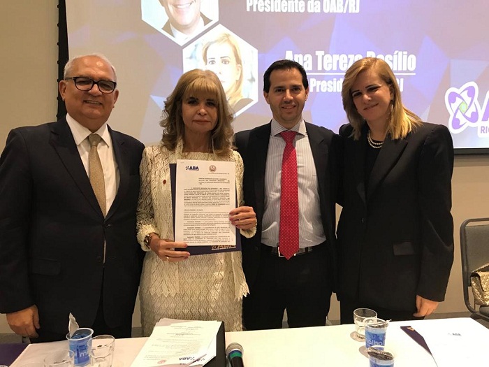 Também estavam presentes no evento o presidente da OAB/RJ, Luciano Bandeira, e a vice-presidente da Seccional, Ana Tereza Basílio. Da esq. para a dir., Esdras Dantas de Souza, Rita Cortez, Marcos Crissiuma e Ana Tereza Basílio