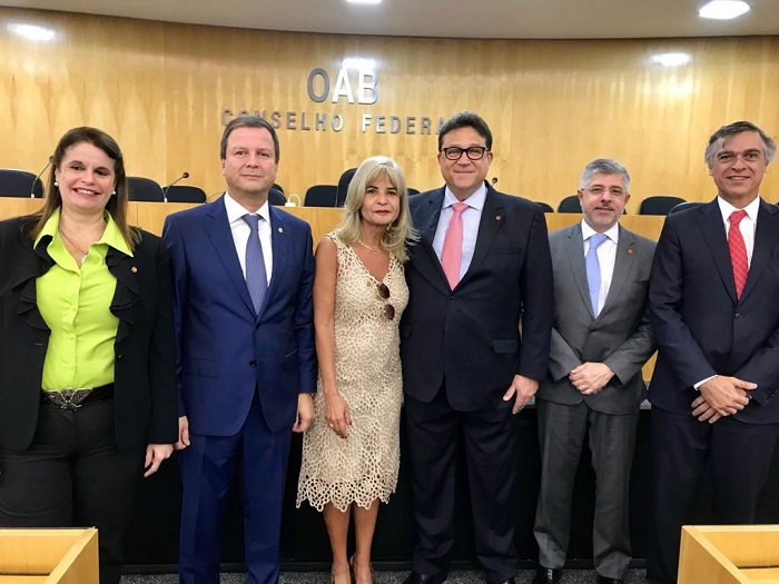 Ao recepcionar a nova presidente do IAB, que assumiu o cargo no dia 9 de maio último para o biênio 2018/2020, o presidente do Conselho Federal da OAB, Claudio Lamachia, disse: “Como afirmei à estimada colega Rita Cortez em sua posse, no Rio de Janeiro, o IAB e a OAB precisam continuar unidos na proteção à democracia e à advocacia”. Na sua primeira manifestação no Conselho Pleno, Rita Cortez também reiterou as críticas feitas por Lamachia à criação desenfreada de cursos jurídicos. “Eles proliferam pelo País, sem qualquer controle em relação à qualidade do ensino prestado aos futuros advogados”, disse. A presidente do IAB compareceu à sessão ordinária acompanhada do 2º vice-presidente, Sydney Sanches; da 3ª vice-presidente, Adriana Brasil Guimarães; do diretor Financeiro, Arnon Velmovitsky, e do diretor adjunto Luiz Felipe Conde.