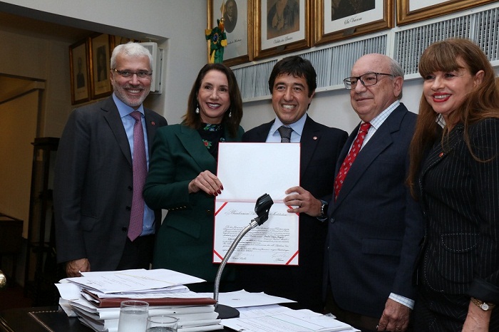 O presidente da Comissão de Direitos Humanos, Carlos Roberto Schlesinger, também fez questão de dar as boas-vindas ao novo consócio e seu afilhado: “O vi nascer e o acompanhei até à loja para a compra do seu primeiro terno”. Da tribuna, André Dinis Angelo agradeceu “as palavras de carinho” e falou da sua “honra por fazer parte desta Casa, que reúne a excelência do pensamento jurídico brasileiro”. Da esq. para a dir., Carlos Eduardo Machado, Marcia Dinis, André Dinis Angelo, Sergio Tostes e Kátia Tavares