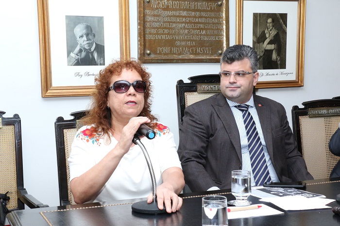 Fernanda Sauer e Marcia DinisNovas tecnologias na advocacia – A presidente da Comissão da Mulher do IAB, Deborah Prates, abriu o penúltimo painel do seminário, O exercício da advocacia e as novas tecnologias, mediado por José Enrique Reinoso, da Comissão de Direito Digital. Deficiente visual, Deborah Prates fez duras críticas ao Processo Judicial Eletrônico (PJe), implementado pelo Conselho Nacional de Justiça (CNJ), em 2013, por meio da Resolução 85. “O PJe travou o funcionamento da ferramenta utilizada pelas pessoas cegas para navegar na internet, impedindo a acessibilidade e banindo os advogados deficientes visuais da profissão”, afirmou.