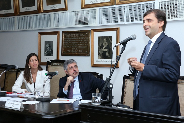 Da esq. para a dir., Fábio Porto, André Marques e Ulisses Martins de SouzaCultura litigante – No primeiro dia do seminário, o advogado especialista em Direito Digital e presidente da Associação Brasileira de Lawtechs e Legaltechs (AB2L), Bruno Feigelson, fez palestra no painel sobre Lawtechs no Brasil: mercado em evolução, moderado por Bernardo Gicquel, membro da Comissão de Direito Digital. O palestrante destacou as dificuldades geradas pela “cultura litigante” no País e citou o número ao qual também recorreria, no último painel do seminário, o juiz Fábio Porto. “Obviamente, o Poder Judiciário não tem como comportar 100 milhões de processos”, disse.