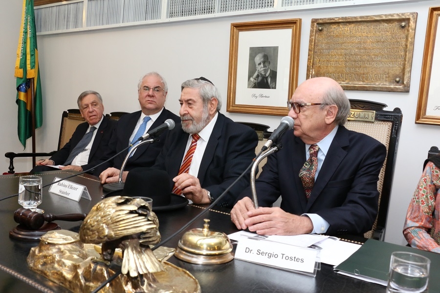 A palestra do rabino Eliezer Stauber, da Sinagoga de Copacabana, sobre A Arbitragem no Direito Hebraico – uma tradição judaica de mais de 5 mil anos marcou o Ciclo de Debates da Arbitragem na História do Direito promovido, nesta quinta-feira (20/10), no plenário do Instituto dos Advogados Brasileiros (IAB), pela Comissão de Mediação, Conciliação e Arbitragem do IAB, presidida por Sergio Tostes, e o Centro Brasileiro de Mediação e Arbitragem (CBMA). De acordo com Tostes, que conduziu a sessão, “o ilustre rabino expôs com riqueza de detalhes a prática da arbitragem pela comunidade judaica como uma forma de solução pacífica de conflitos, citando dados históricos e fatos concretos com invulgar capacidade de comunicação”.
