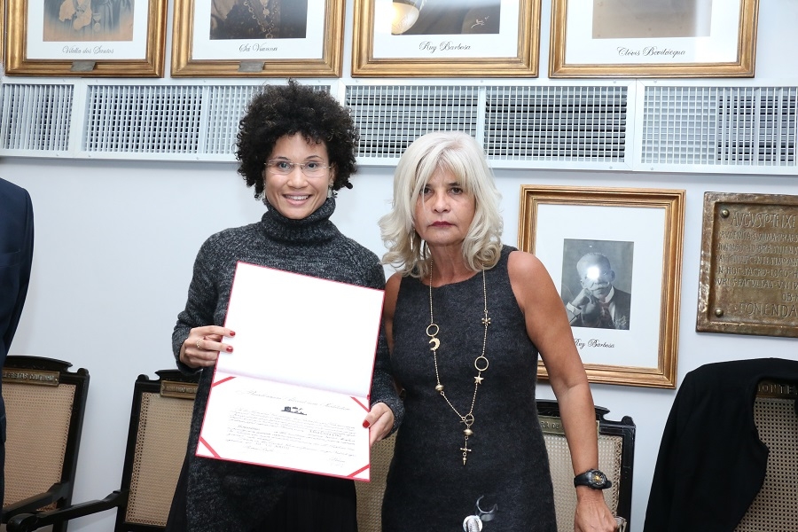 Elisa Costa Cruz recebe o certificado de membro honorário pelas mãos da 1ª vice-presidente do IAB, Rita Cortez
