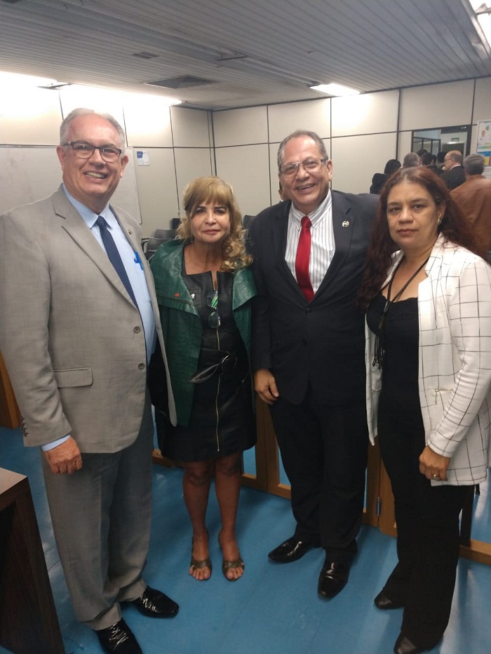 Na palestra, a presidente do IAB citou alguns trabalhos recentes desenvolvidos pelas comissões temáticas. A advogada falou, por exemplo, do conjunto de pareceres elaborados pela Comissão de Direito Penal, com posicionamento contrário a 17 das 19 medidas do pacote enviado ao Congresso Nacional pelo ministro da Justiça e Segurança Pública, Sergio Moro, com o objetivo de alterar 14 leis federais para intensificar o combate à criminalidade. Rita Cortez entregou os pareceres ao presidente da Câmara dos Deputados, Rodrigo Maia, no dia 20 de maio, no Conselho Federal da OAB, em Brasília. Da esq. para a dir., Aloízio Perez, Rita Cortez, Eduardo Linhares e Neusane Freire