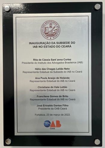 O novo representante estadual, que ficará responsável pela administração da subsede, tomou posse em substituição a Christiane do Vale Leitão, que assumiu recentemente o cargo de vice-presidente da OAB/CE. Ao conduzir a abertura da solenidade, Christiane Leitão disse: “O Ceará é a terra de Iracema, de Rachel de Queiroz, de Maria da Penha e, agora, de Rita Cortez”. Também são representantes estaduais do IAB no Ceará as advogadas Ana Paula Araújo de Holanda, presente na solenidade, e Francilene Gomes de Brito, que não pôde comparecer. “Esta subsede é um sonho acalentado por todos nós, sendo importante ressaltar que ela está sendo inaugurada por Rita Cortez, que é talento que pulsa, personalidade forte e mulher transgressora, e será capitaneada por Hélio Leitão, que é talento na diplomacia e a voz dos excluídos”, afirmou Ana Paula Araújo de Holanda.