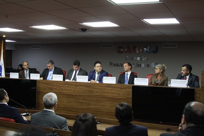 A mesa de honra foi composta por Rita Cortez, Paulo Máximo, os presidentes da OAB/RJ, Felipe Santa Cruz, da OAB/MG, Antonio Fabrício de Mattos, e da Associação Brasileira de Advogados Trabalhistas (Abrat), Roberto Parahyba; o ex-presidente da Acat, Luis André Varssestein, e o desembargador do Tribunal Regional do Trabalho da 1ª Região (RJ) e membro honorário do IAB Marcos Cavalcante, que integra a Comissão de Direito do Trabalho do Instituto, presidida por Daniel Apolônio, que compareceu à cerimônia, e da qual faz parte o novo vice-presidente da Acat, Alexandre Bastos.