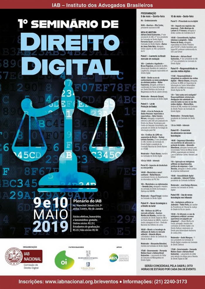 17h30 – Encerramento – Fernanda Maibon Sauer e Adriana Brasil Guimarães – Lançamento do edital para seleção de artigos para a Revista de Direito Digital do IAB