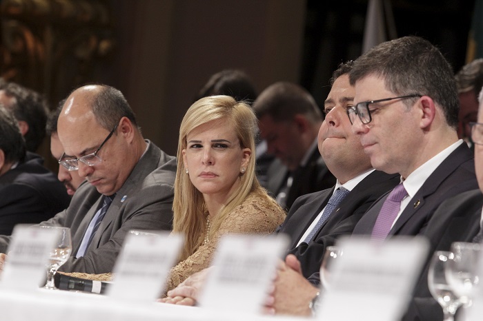 Da esq. para a dir., Wilson Witzel, Ana Tereza Basílio, Felipe Santa Cruz e Luciano BandeiraEm seu discurso, Luciano Bandeira afirmou: “Quando entrei na Universidade, há 30 anos, o Estado do Rio de Janeiro contava com menos de 50 mil advogados e advogadas. Hoje esse número triplicou. O aumento do número de profissionais mudou o perfil da carreira, tornou-a menos elitista e mais representativa”. O novo presidente da OAB/RJ disse, também, que “a responsabilidade da Ordem na defesa de seus inscritos será a base de sustentação do nosso período à frente da seção do Estado do Rio de Janeiro”.