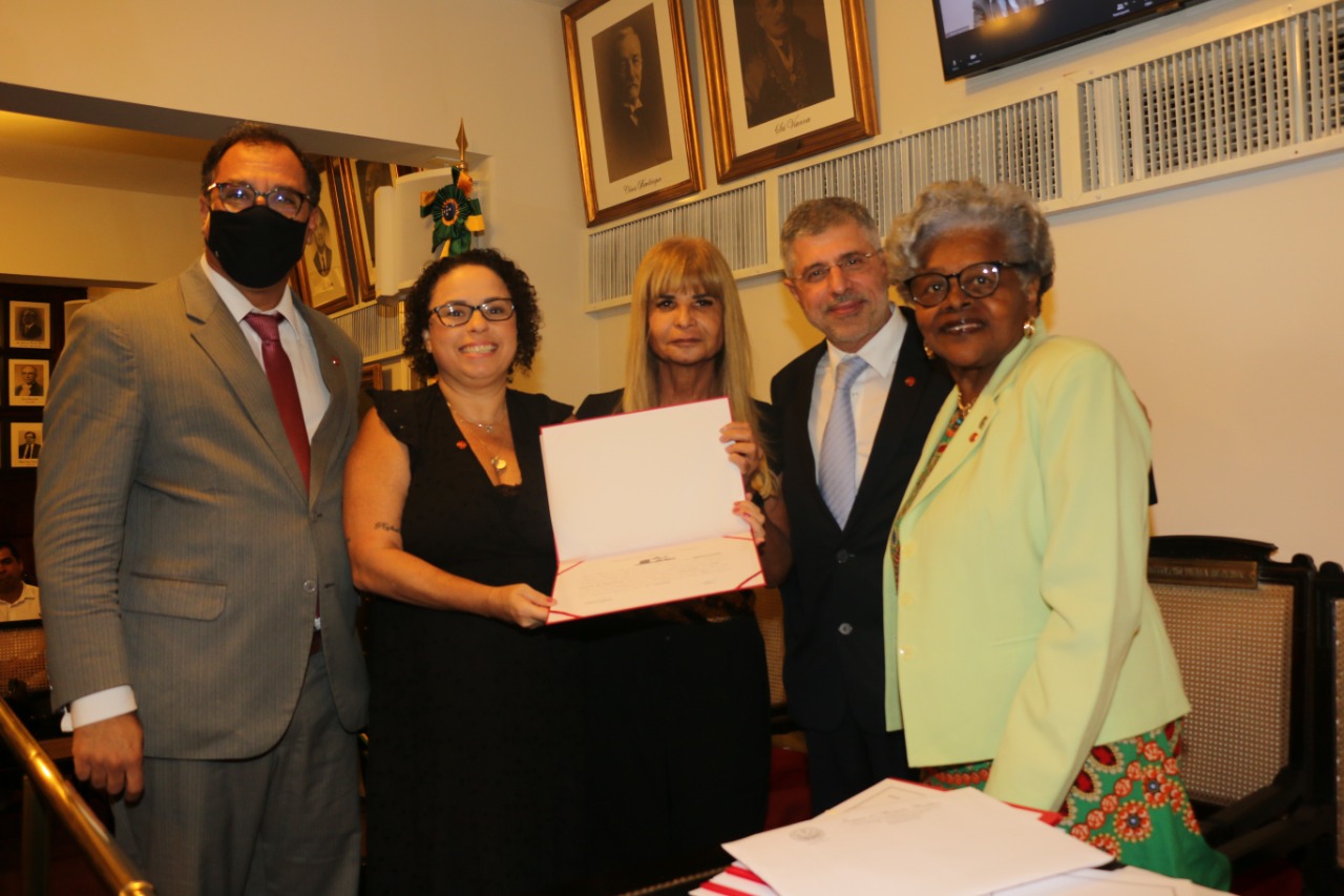 Professora da Universidade Federal do Rio de Janeiro, Cláudia Franco estava orgulhosa pelo convite e agradeceu a todos pela acolhida. "É uma honra muito grande fazer parte de uma Casa com tanta tradição, com compromissos éticos e de retidão aos princípios. Para mim é muito importante fazer parte de uma Casa que busca o consenso da inteligência, da cientificidade, do bem-estar social. É um prazer muito grande estar aqui", agradeceu.