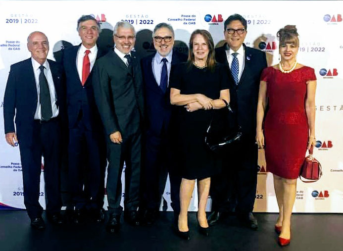 Da esq. para a dir. Adilson Rodrigues Pires, Luiz Felipe Conde, Carlos Eduardo Machado, Renato Tonini, Carmen da Costa Barros, Arnon Velmovitsky e Kátia Rubinstein TavaresTambém compuseram a mesa de honra o presidente do Tribunal Superior do Trabalho (TST), João Batista Brito Pereira; os ministros do TST Guilherme Caputo Bastos, Delaíde Arantes, Alexandre Agra Belmonte e Cláudio Mascarenhas Brandão; o presidente do Superior Tribunal de Justiça (STJ), João Otávio de Noronha; o ministro do STJ Antônio Carlos Ferreira; o senador Rodrigo Pacheco, representando a presidência do Senado; o corregedor nacional de Justiça, ministro Humberto Martins; o advogado-geral da União, André Luiz de Almeida Mendonça; a conselheira federal decana Cléa Carpi da Rocha; o presidente da Conferência Nacional dos Bispos do Brasil (CNBB), Dom Sérgio da Rocha; o presidente em exercício do TRF-1, desembargador Cassio Nunes Marques; os membros honorários vitalícios do CFOAB Reginaldo Oscar de Castro, Roberto Antonio Busato, Cezar Britto, Ophir Cavalcante Junior e Marcus Vinicius Furtado Coêlho; o coordenador do Colégio de Presidentes, Paulo Maia; o coordenador nacional das Caixas de Assistência, Pedro Alfonsin; o diretor-geral da ENA, Ronnie Preuss Duarte; o presidente do Fida, Felipe Sarmento; a coordenadora de Comunicação do Conselho Federal da OAB, Fernanda Marinela; o defensor público do Estado do Rio de Janeiro, Pedro Carriello; o advogado Paulo Roberto de Gouveia Medina e representantes diplomáticos e da advocacia de Angola, Bolívia, Guiné-Bissau, Estados Unidos, Bélgica, Colômbia e da União Internacional de Advogados.